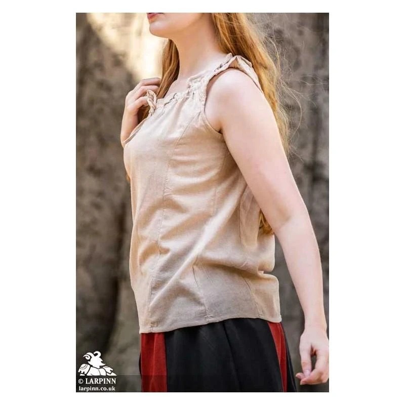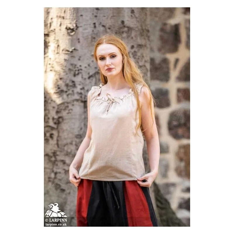 The Adele Sleeveless Medieval Blouse is a ‘must-have’ item for your LARP, Cosplay or theatre costumes. This particular shirt is light weight and provides great comfort, perfect as a base layer for a variety of costumes. Available in black, cream, orange and white, this particular shirt is great for warm weather or layering costume.