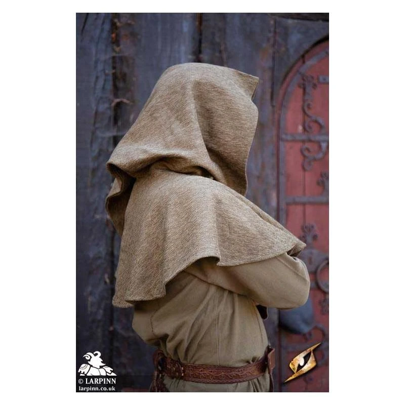 Epic Armoury’s Hood Adventurer is a hood with a short mantle and long hood tail. The mantle covers the shoulders, keeping the upper chest covered, while the roomy hood can be pulled down to cover part of the face. Made of a rougher fabric than our Basic Hood, this hood provides protection from the elements without being too warm in potential heat.