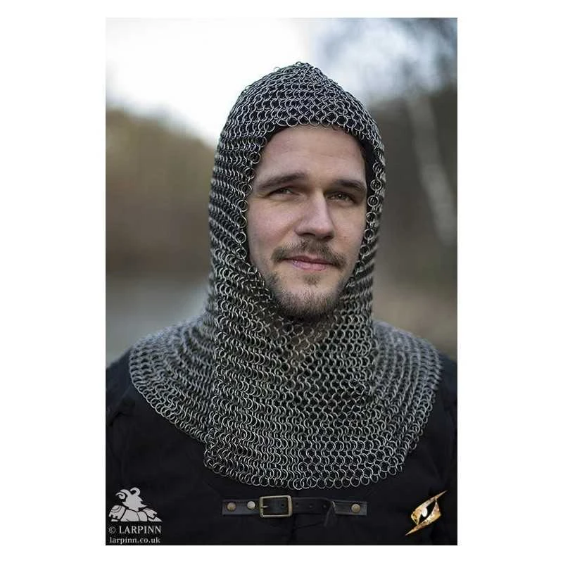 Note: The Alaric Chainmail Coif is stored oiled. When first using the chain you will need to thoroughly wipe it down with an old cloth to take off the excess oil.
