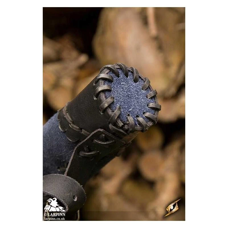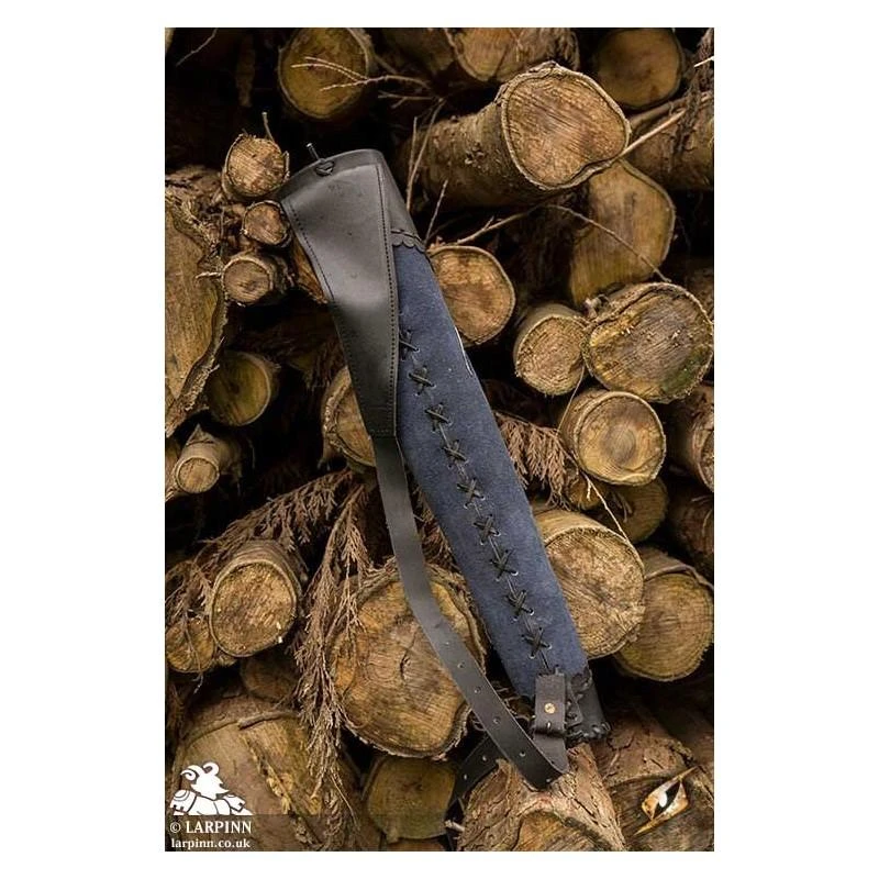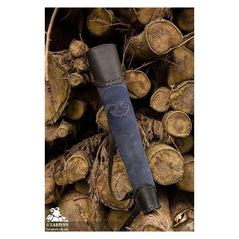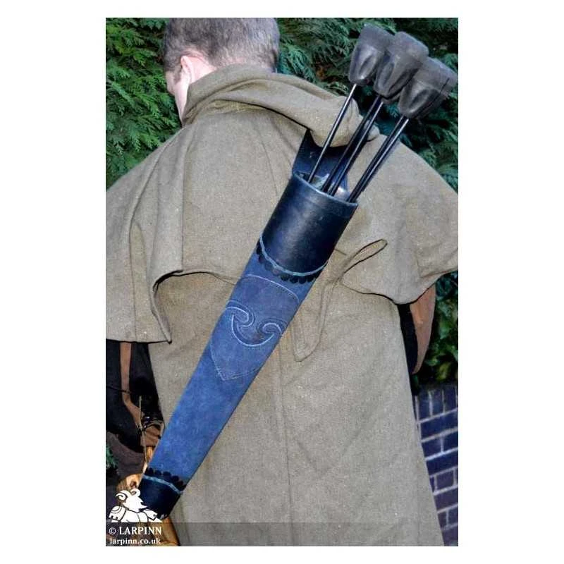 Epic Armoury’s Archer Quiver is a handsome tapered quiver designed to carry a supply of arrows with you on your adventures. It fits most LARP arrows and is made from chrome-tanned plated-leather with a soft split-leather exterior. Ornamental split-leather patches decorate this quiver to give it an embellished appearance. The circular bottom is stitched to the body with a similar flattened leather cord used along the top.