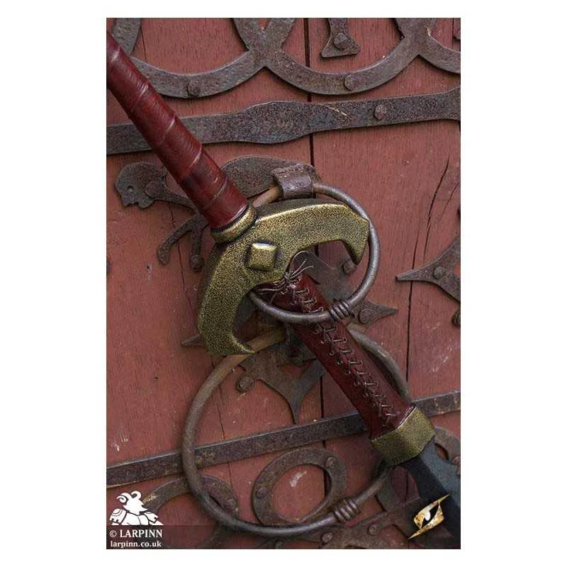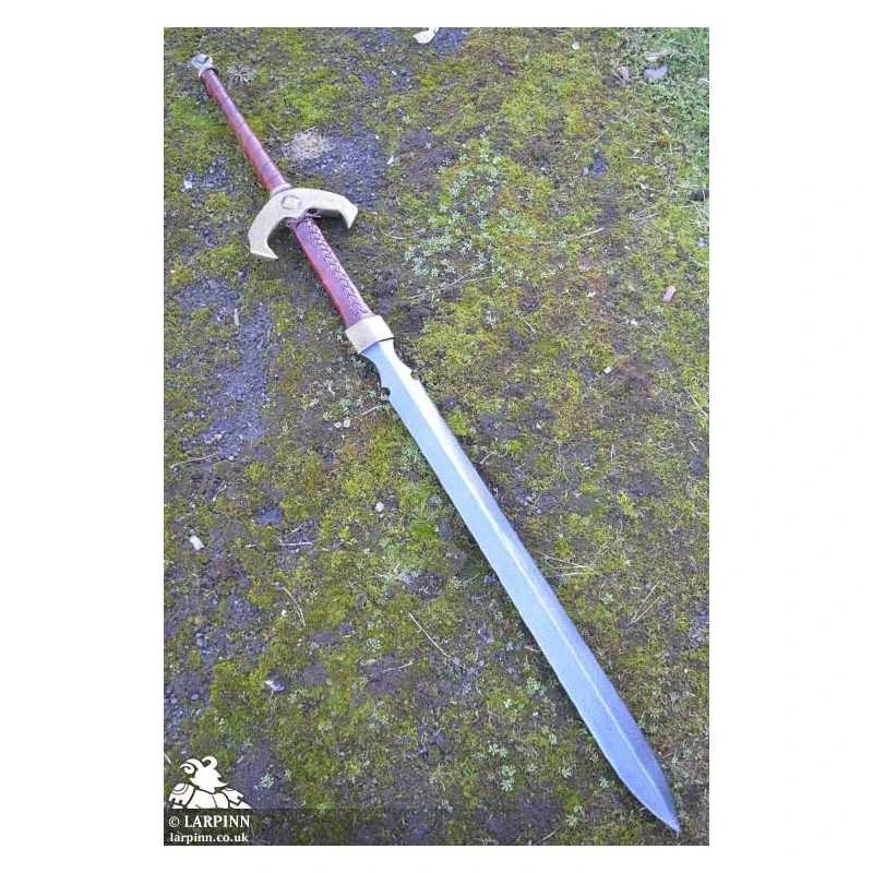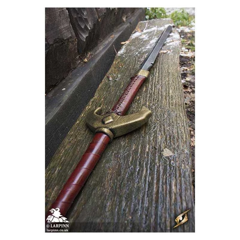The Baal sword has a V-shaped crossguard decorated with diamond patterns, protecting the 32 cm handle wrapped in split-leather. The grip is ergonomic to give you the best possible control of the lengthy blade. The pentagonal pommel is designed to match the crossguard.