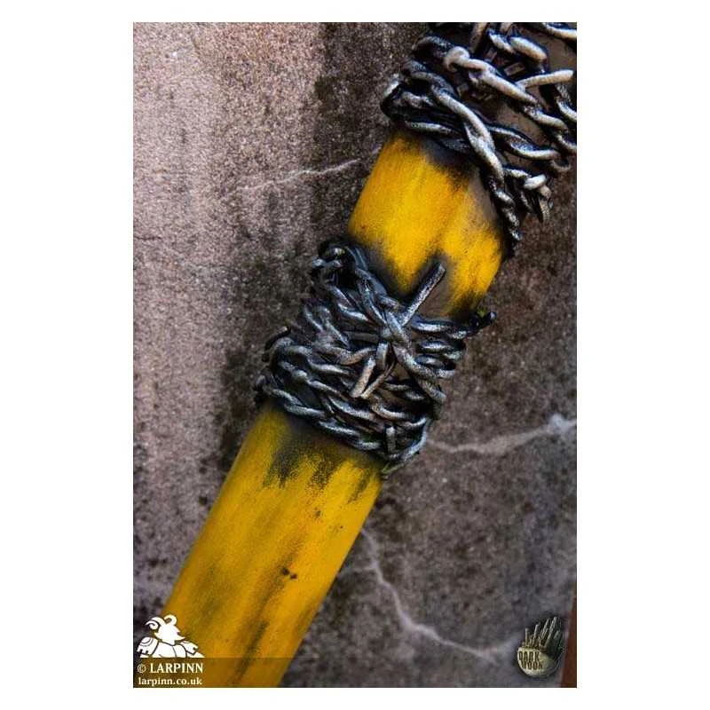 Dark Moon’s Yellow Barbed Wire Bat is a foam baseball bat that has been given a rather formidable upgrade. Designed to look like a wooden bat painted yellow with barbed wire wrapped around its end, this is the ultimate weapon for a post-apocalyptic fighter. Whether you’re instilling fear in the hearts of your minions, or taking out hordes of zombies, ol’ slugger has got your back.