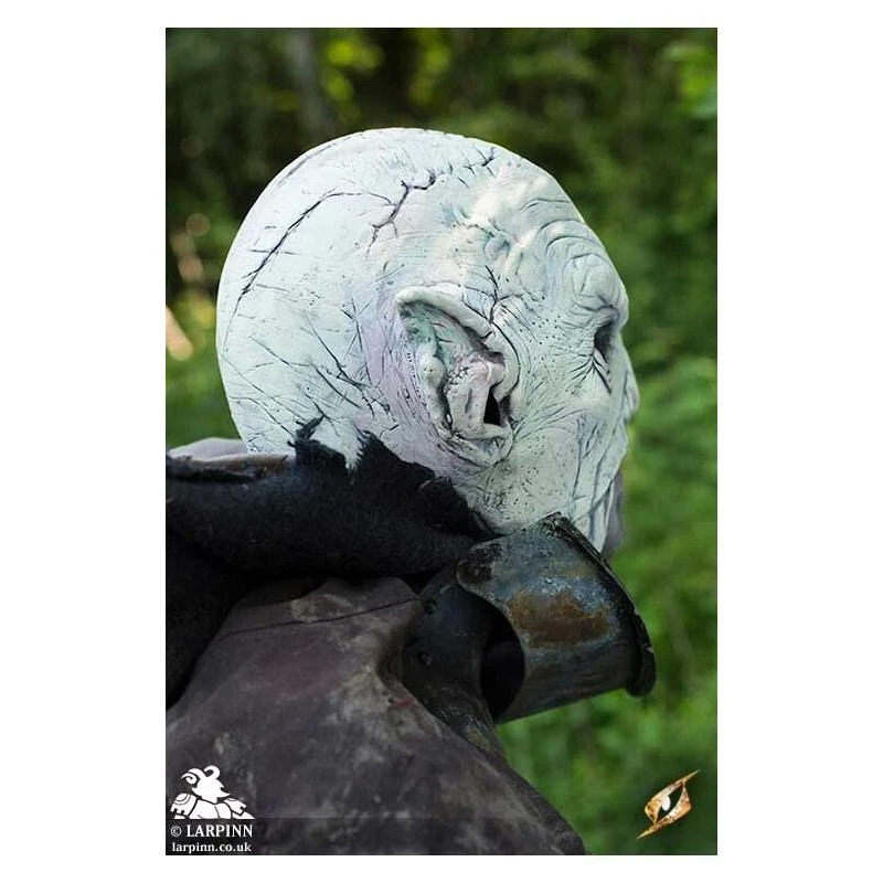 Epic Effects’ White Bestial Orc is a full Orc Mask with a serious angular face, perfect for a rough and severe Orc soldier. This mask has a classic orc’s distinct features: a belligerent expression with low, furred brow; serrated pointy ears; and a plain nose with large nostrils. The skin is leathery and handpainted white with darkened creases and furrows, giving the impression of recent battles. With such attention to detail, this mask has a menacing appearance while also maintaining realism.