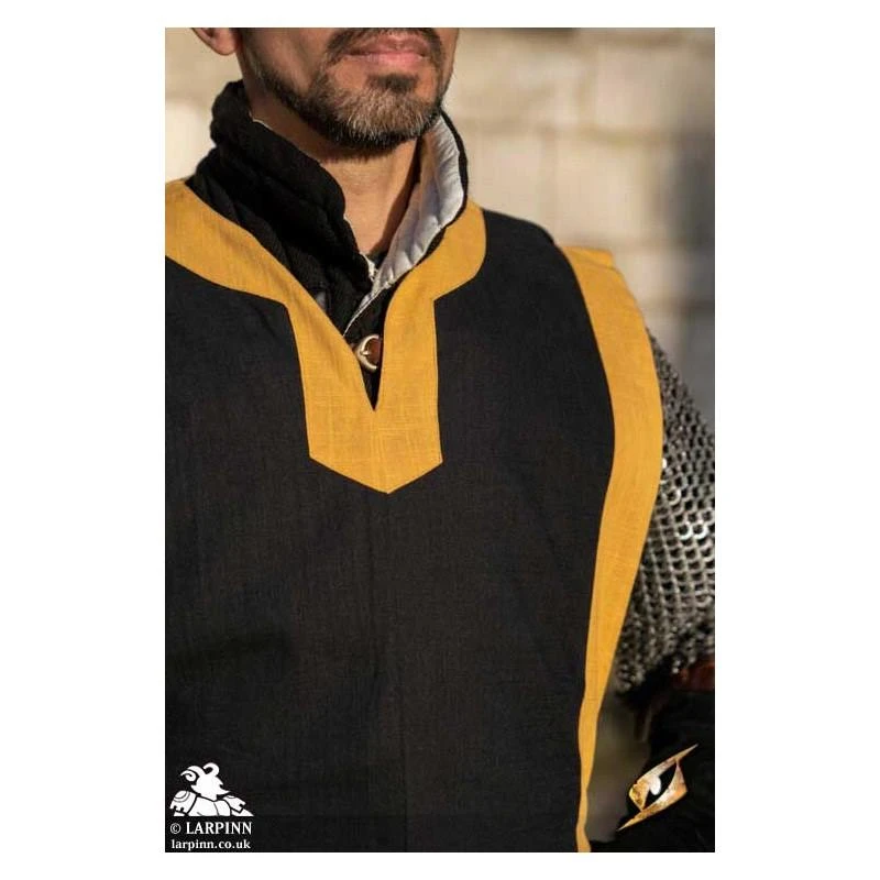Knights of old will adore wearing Epic Armoury’s Clement Tabard. This sleeveless jerkin is designed to be worn as an outer dress over your medieval costume or armour and is made from roughly woven cotton. Our sleevless coat is made from white knitted cotton embellished by a beige trim. Our rugged-looking medieval tabard is quickly secured at the waist by cotton ties so you may quickly enter battle and defend your territory. Use it to display your heraldry, guild affiliation or to help boast your deeds and protect your uniform as you Larp.