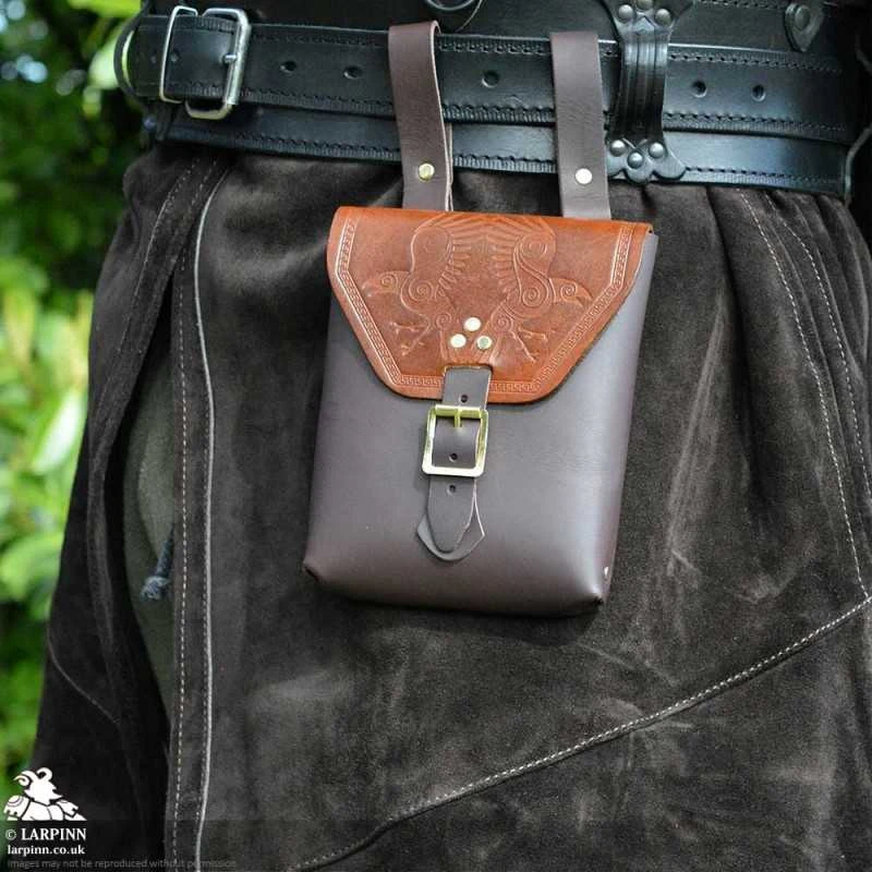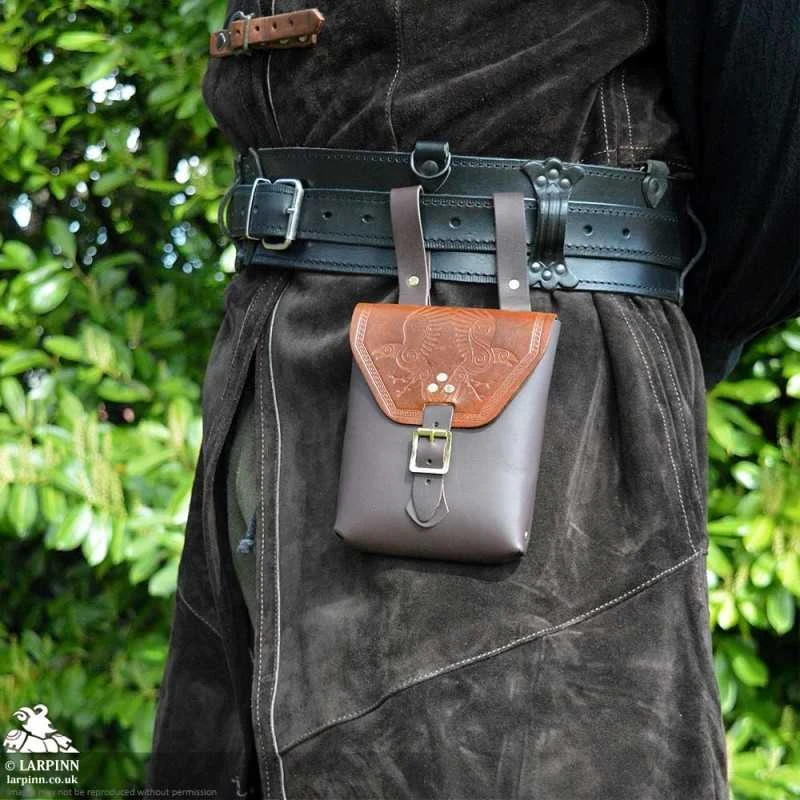 The Corym A6 Leather Pouch is an essential item for the belt of any LARPer – new or old! This pouch is handmade from real, high-quality leather here at Larp Inn and is designed to easily hold an A6 book with space for extras. Of course, the contents are not limited to books, and this bag is perfect for holding all your in-character or out-of-character items securely, whilst you roll around on the ground.