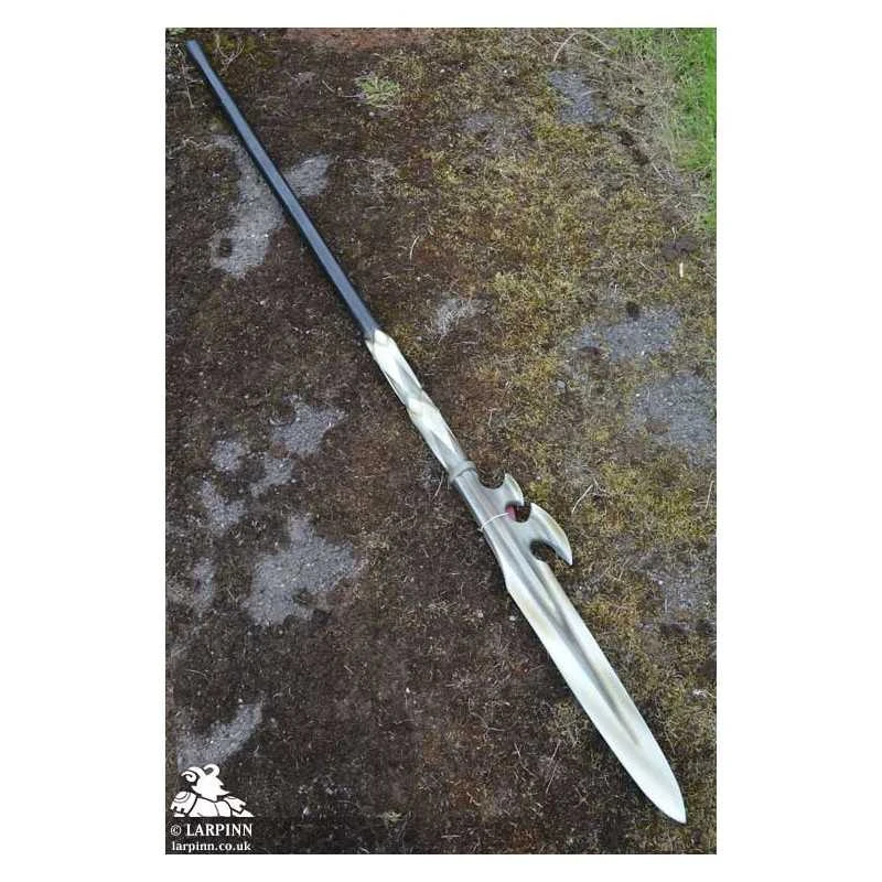 The Dark Elven Glaive is a weapon specifically designed for the Dark Elven collection. This 190 cm glaive features a finely sculpted, double-edged blade with a deep fuller. Spinal shaped spikes add to the blade’s bone appearance, along with the handpainted and sculpted detailing. The shaft is a smooth 90 cm long pole, finished to look like dark wood.