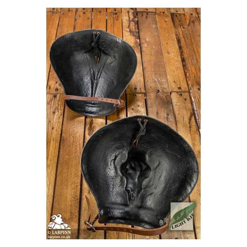 To the eye, our range of polyurethane armours are near indistinguishable from their metallic counterparts. They are however much more comfortable to wear and can be worn for long periods of time without discomfort. Indeed, the flexible nature of this armour means that it can bend to the contours of your body in a way that rigid steel will not. Each part is typically a quarter of the weight of their steel equivalent, allowing for faster movement with less fatigue. Each piece is hand painted with a durable acrylic finish and is detailed to look as realistic as possible. The maintenance free finish will not rust like steel does and can be worn in all weathers. Adjustable leather straps and the flexible nature of the armour allow it to be comfortably worn by all but the largest of people.