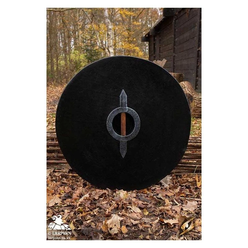 Pair this Drang Shield with a Viking Axe and impress your fellow warriors on the battlefield. Its slight convex shape and iron boss on the front provides an edge in combat, and its reliable punch-grip fits comfortably in your hand thanks to its brown suede wrap and shape. Keep your shield in great condition with regular latex maintenance.