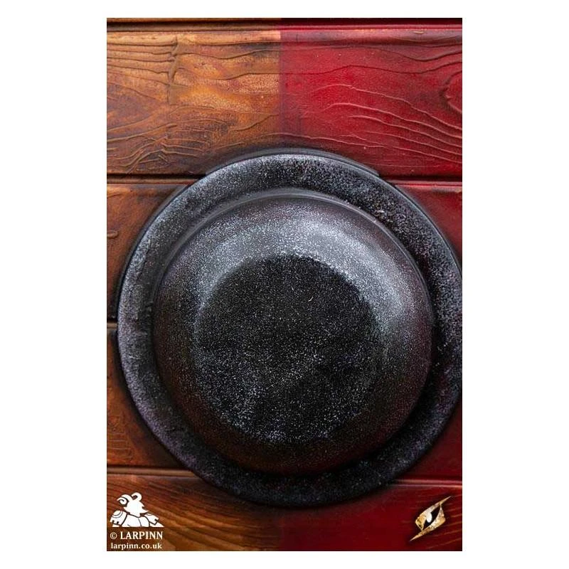 Epic Armoury’s Red/Wood Drang Shield is a 80 cm round latex shield perfectly designed for coastal raids. Inspired by early Vikings and Saxons, this Live Action Role Play (LARP) safe shield looks just like the real thing–without hurting your costumed buddies. Featuring a realistically textured surface and hand painted finish, this shield appears to be made from wood around an iron boss. Red paint decorates half its face, purposefully faded to give it that weathered and used appearance.