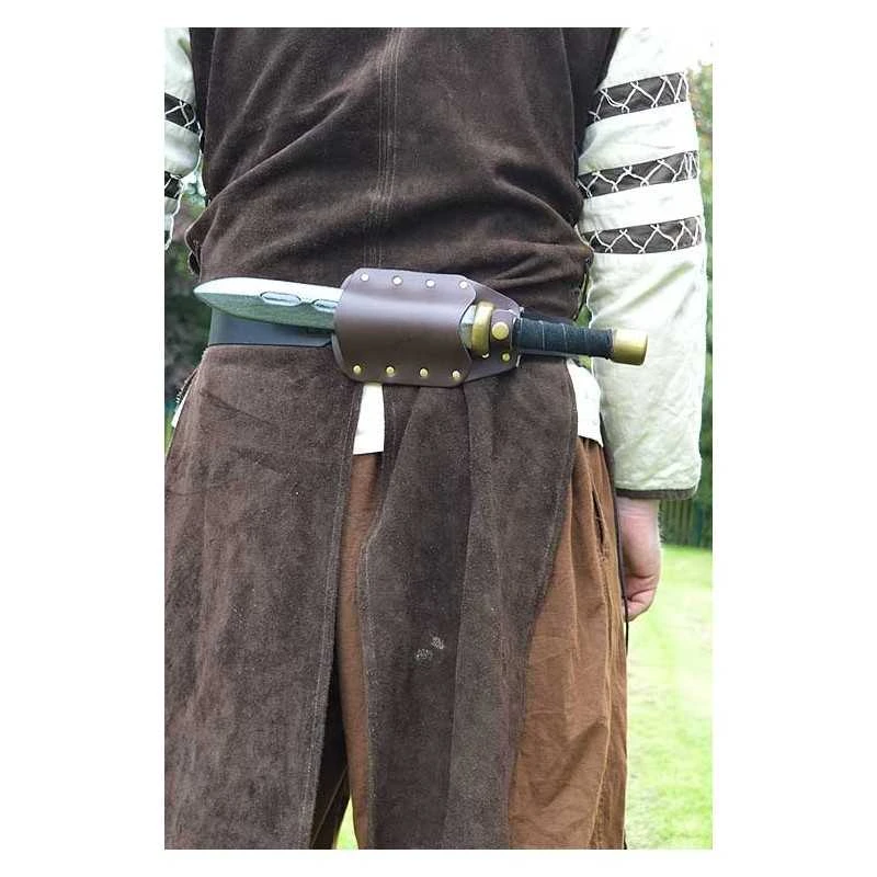Our Earl Dagger Scabbard range are designed with the slimmer RFB (ready for Battle) dagger range in mind but hold a vast range of daggers securely. All our Earl Scabbards are produced from high-quality leather and constructed at our Larp Inn workshop, UK. The Horizontal Dagger Scabbard holds your dagger across the body, ideal for the base of your back. There is a large belt loop at the back of the scabbard which helps to maintain maximum stability as the scabbard sits along the belt. The popper clip ensures that your dagger won’t slip out as you move around.
