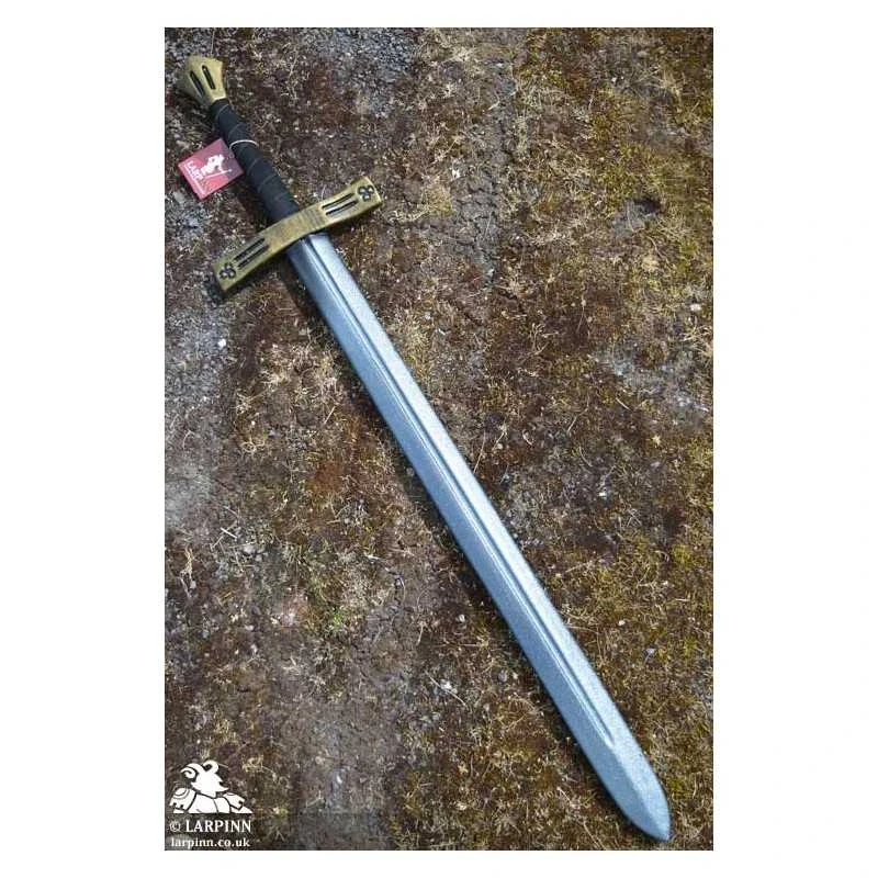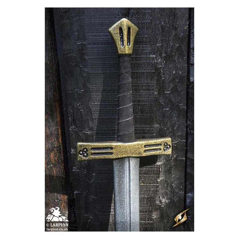 Epic Armoury’s First Crusader Sword is a beautiful latex blade inspired by high-medieval longswords. The sword is 110 cm long, with a 80 cm double-edged blade with an excellent reach. The blade features a fuller, making the weapon lighter and stronger. The broad and richly decorated crossguard protects the 20 cm ergonomically-shaped handle, which is wrapped in split-leather and long enough to be used one- or two-handed. The pommel is handpainted and sculpted to match the crossguard.