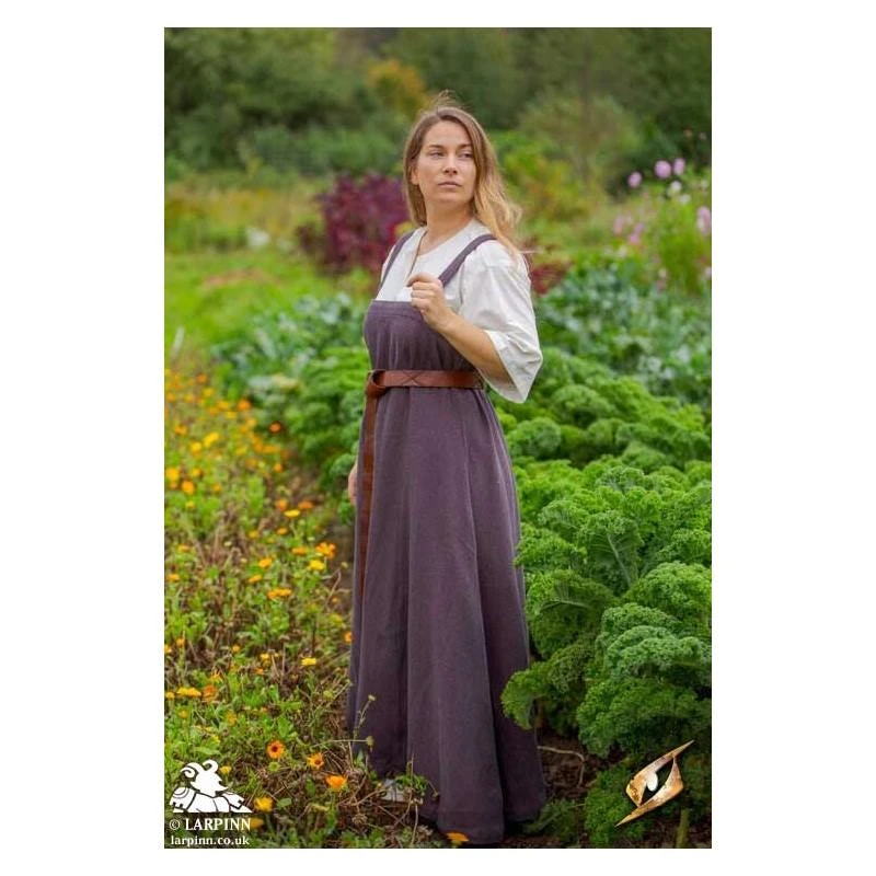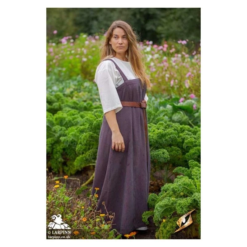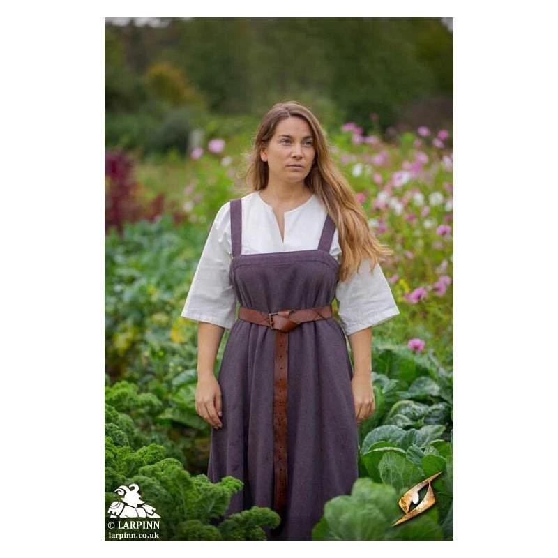 The Frida Dress comes to us from the Norse and the Vikings. It follows the hangerok style of the early mediaeval era of Northern Europe. It has been made from herringbone-patterned cotton, giving it a nice thickness and weight. A shift or shirt should be worn underneath for an authentic and more comfortable experience. The shoulder straps have been made so that they’re easy to modify with some needlework. The Frida Dress is suitable for everyone, from commoners to nobility, as it can be accessorised with brooches and jewellery and will complement any shift well.