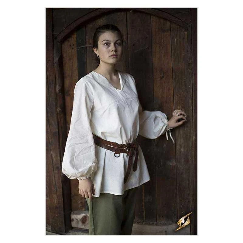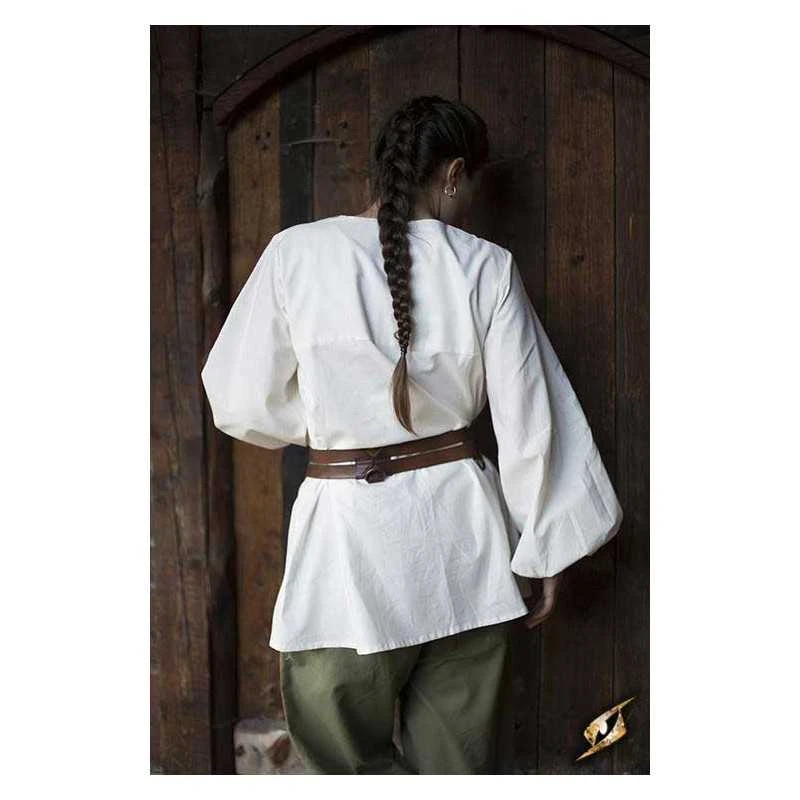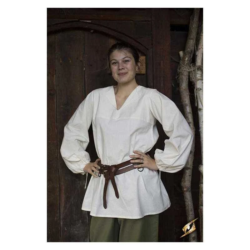 Epic Armoury’s new Godfrey Shirt is a loose roguish garment made from light cotton and designed for both comfort and style. It falls just over the hip, and is fitted with a subtle collar along the v-neckline. The sleeves are designed to give a full, loose look befitting a wide range of social classes and careers from the late Middle Ages through the Renaissance. Tighten a cotton cord at the wrists to keep the fabric out of the way, made to easily fit inside a pair of gloves or gauntlets.