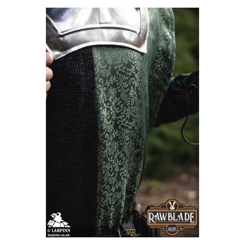 Made from premium cotton fabric and adorned with high-quality damasc pattern fabric, this tabard exudes elegance and authenticity. Crafted with meticulous attention to detail, the Harbinger Tabard features a stunning damasc pattern fabric that adds a touch of regality to your ensemble. The intricate designs and rich colors of the fabric create a visually striking appearance, capturing the essence of medieval aesthetics. Constructed from breathable and durable cotton fabric, this tabard ensures comfort and freedom of movement during intense battles and adventures. Its lightweight nature allows for easy wear and helps to keep you cool during long days at medieval events or Renaissance fairs.