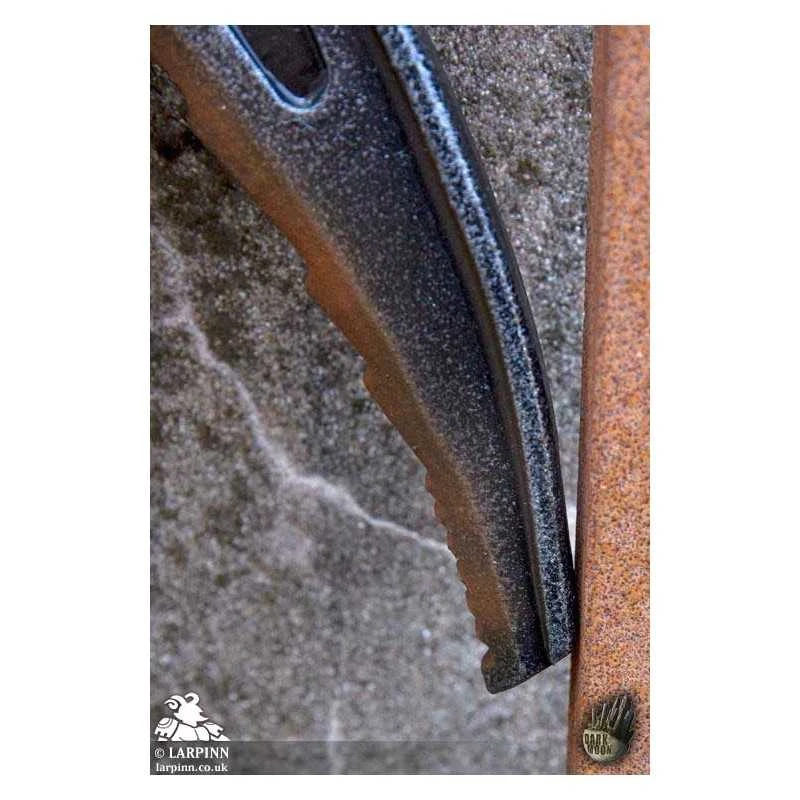 This tool-made-weapon is entirely hand painted with a white handle and metal finishes, and is sculpted from safe EVA foam around a 8 mm solid fibreglass rod core. It is coated with a strong layer of flexible latex. This Ice Axe might be the one thing between your LARP character and the zombies and raiders–and with proper care, it should last longer than your character’s likely survival rate.