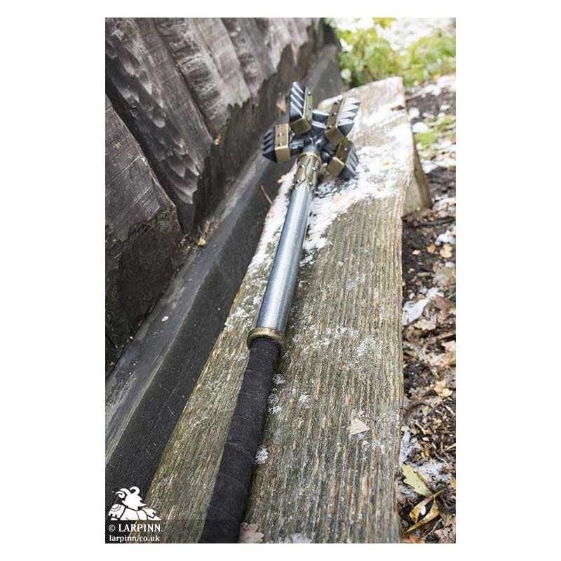 This bestselling Epic Armoury King Mace is an imposing looking weapon designed to fit anyone looking to make an impression. The mace is 110 cm long from point to pommel, with a stubby hexagonal spike on top. It has five reinforced flanges around the head, each 15 cm long and 10 cm tall and tipped with four cruel-looking spikes.