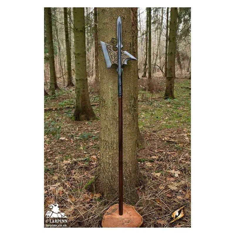 Epic Armoury’s Kingsguard Halberd is a 190 cm latex poleaxe inspired by a weapon commonly used during the late medieval period. The Kingsguard Halberd’s axe-like head has a 47 cm blade for chopping, a long spear for piercing, and a claw-like spike for grappling. The axe-head is hand painted and sculpted to appear realistic, detailed with golden carved vines to give it a rich, royal appearance.