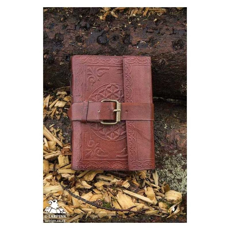 The cover is made from stenciled top-grain leather which protects the pages inside. It is secured closed using a short leather strap with a brass buckle. Use this diary as the start of a secret tome filled with mysterious or infernal scribbles, a treatise, or simply as a personal in-game diary.
