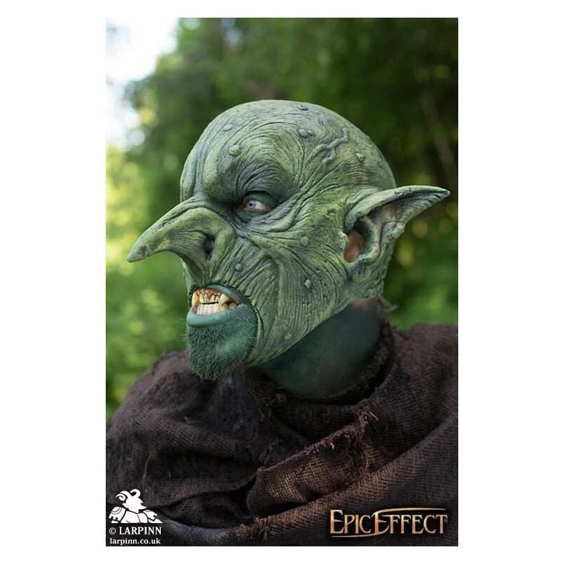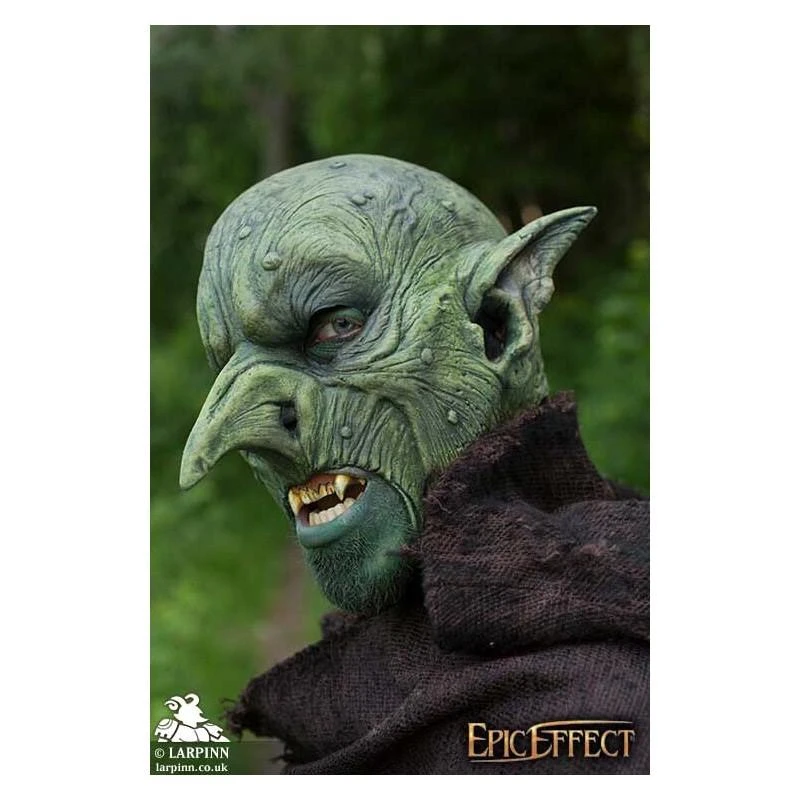 Epic Effects’ Malicious Goblin Mask is a full Goblin Mask with a cruel and mischievous feel, repulsive to civilized people. This mask has a classic goblin’s distinct features: a long pointed and slightly crooked nose with large nostrils, distinct pointed ears, and heavily textured skin. With multiple warts and moles as well as serrations, scars and marked furrows on the skull, this mask maintains a menacingly feel while also appearing realistic.