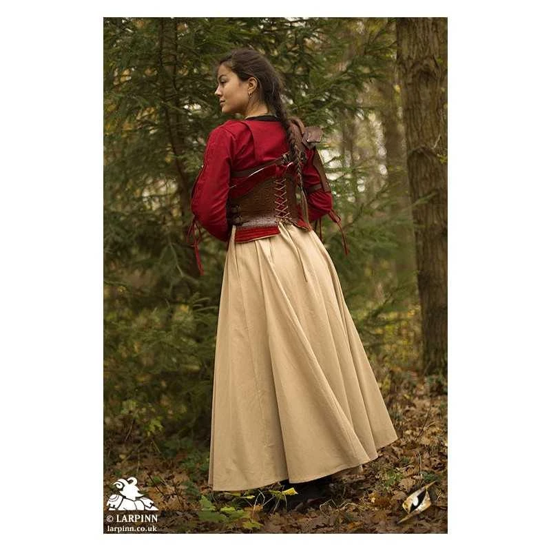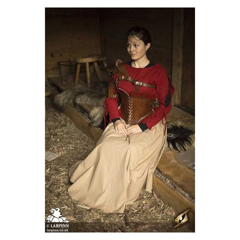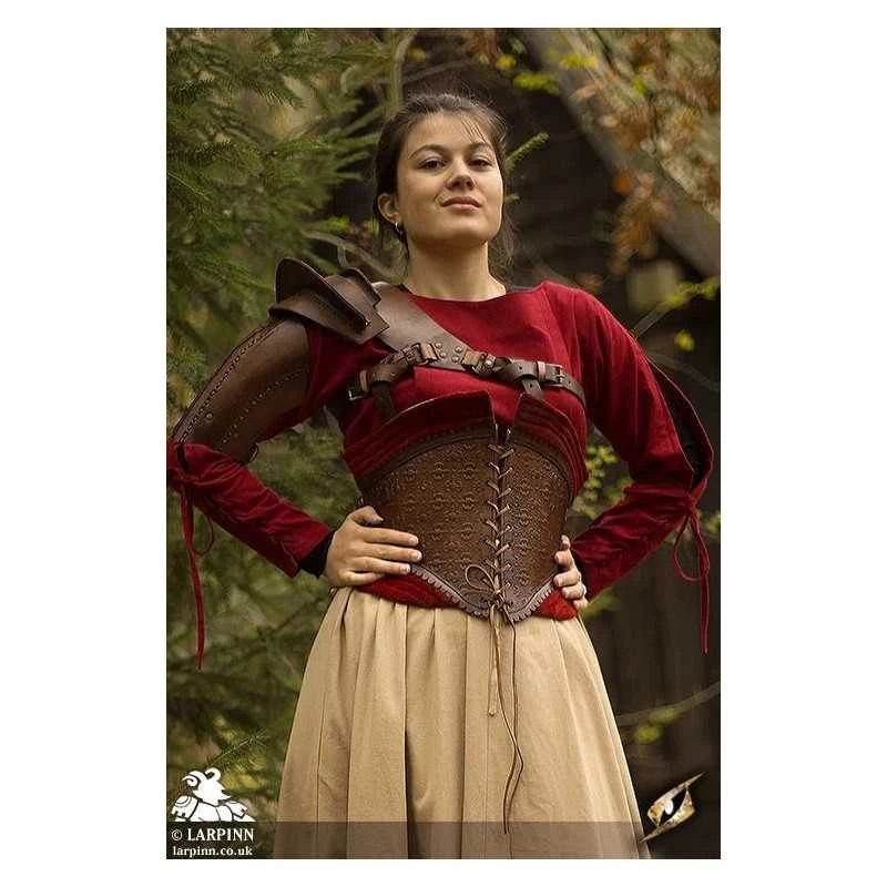 Epic Armoury’s Epic Black Margot Corset is a leather underbust designed to protect the abdomen while making you look and feel confident on the battlefield. The corset’s fit is changeable by tightening the leather cord down the front and back and adjusting the two leather straps along the sides. The leather bodice is embellished with detailed imprinting and edged with attractive fabric to increase comfort and appeal. With regular leather care, you can expect the Margot Corset to last a long time. Use this corset to create an intimidating statement or add some interest to your kit.