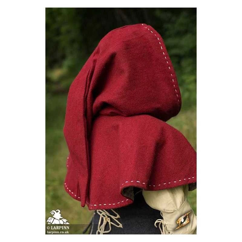 Epic Armoury’s Medieval Hood is a hood with a mantle and long hood tail. The mantle covers the shoulders, keeping the upper chest warm while the hood protects the head and face from harsh wind. Made from felted, blended wool and lined on the inside with soft cotton, this hood is comfortable and solid. Decorative stitches line the hood and hem, embellishing and adding great detail to a practical product.