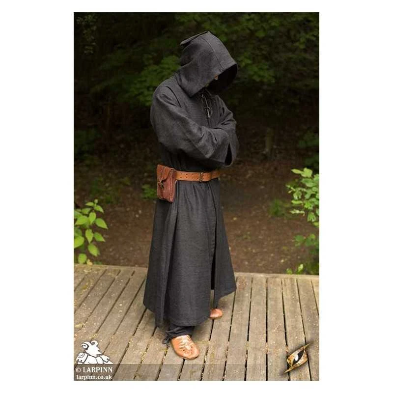 Epic Armoury’s Robe Benedict, or the Monk Robe, is an all-purpose robe made from textured cotton and secured below the neck with a cotton tie-string through a soft-leather plate. Whether it is worn open or closed, this versatile long-sleeved robe is an essential when adding layers to almost any character’s costume. The robe’s hood, roomy sleeves and length combine ease of movement with the best degree of protection from wind, rain or sun. Made from cotton, this robe is easily made waterproof.