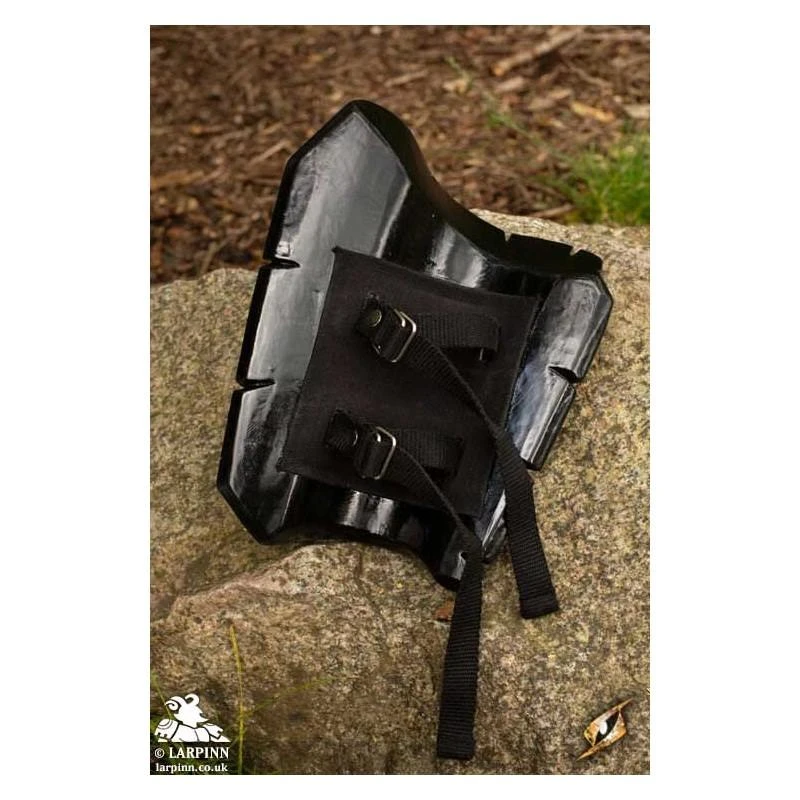 Never mind using your shield for guarding yourself – be practically offensive and use it to bash in your opponent’s grey matter instead! The Epic Armoury Orc Buckler is a small latex LARP shield worn around the wearer’s arm, inspired by the brutal and cataclysmal ways of orcs and other terrifying creatures. Use it to shield yourself against blows or simply use it as a mean to swiftly clear your way from any annoying goblinesque obstacles. The rough buckler is elongated with rounded corners; rugged and worn with dents and scratches, it sports a collection of golden riveted detailing on front. Featuring two sturdy bands with adjustable buckles to strap your arm securely against the underside, feel confident that this hard EVA foam and latex shield will withstand the continued abuse of a LARP with regular maintenance.