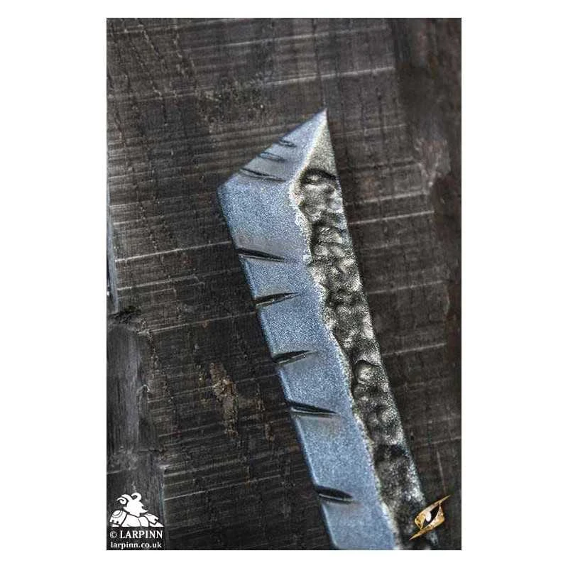 The Orc Shortsword is a latex weapon designed as part of the Orc Universe, perfect for warrior brutes and warlords alike. The sword is 60 cm long with a 45 cm heavy blade. Designed with sculpted notches, dents and scratches, the handpainted iron blade appears realistically cruel. Orcs don’t fear pain, so the 12 cm handle is not protected by a crossguard. The handle is wrapped in split-leather for a secure grip.