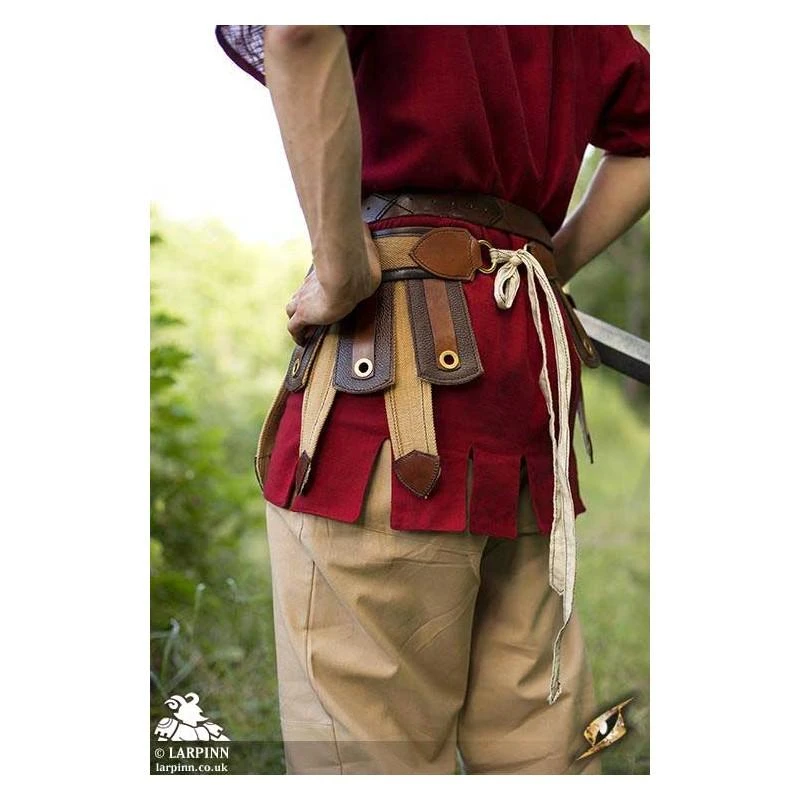 The Roman Belt is a belt inspired by the military belt worn by ranking Roman soldiers. The Roman Belt’s five hanging leather plates and metal fittings protect the groin, but ultimately this is more for a show of rank than for armour.