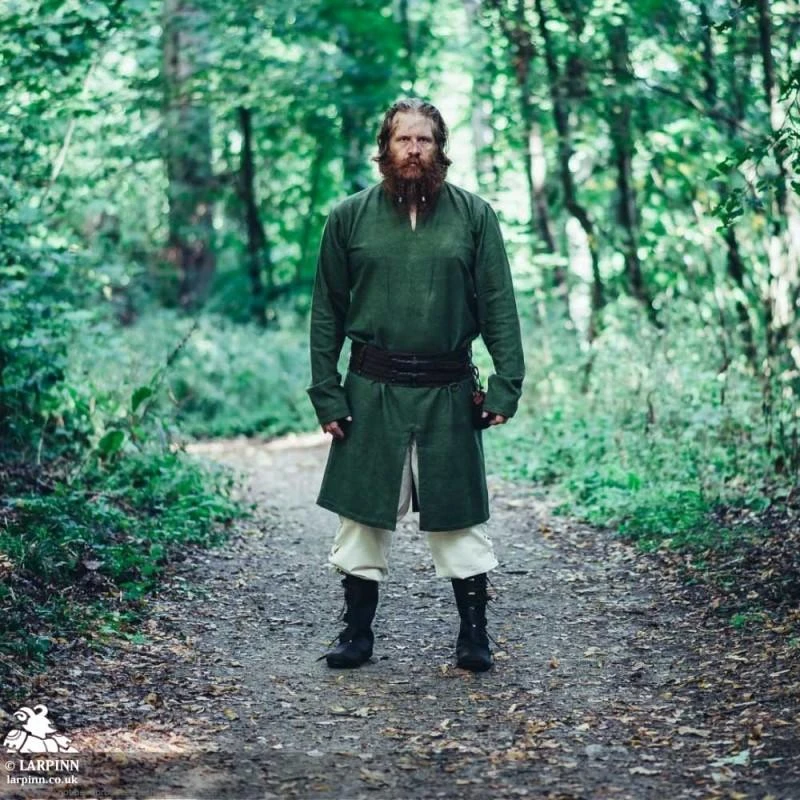 The Shresh Tunic is made form simple cotton, designed to emulate the more realistic Anglo-Saxon tunic design. The plain edges have been left without a trim to provide a low-fantasy look.