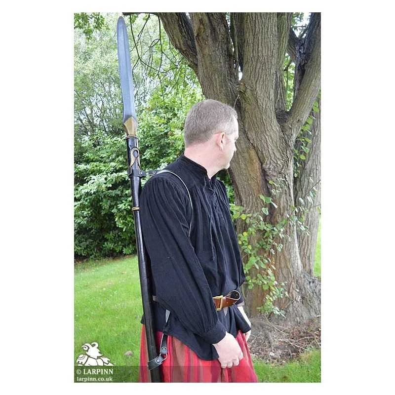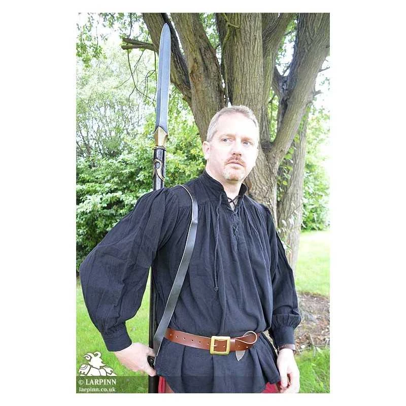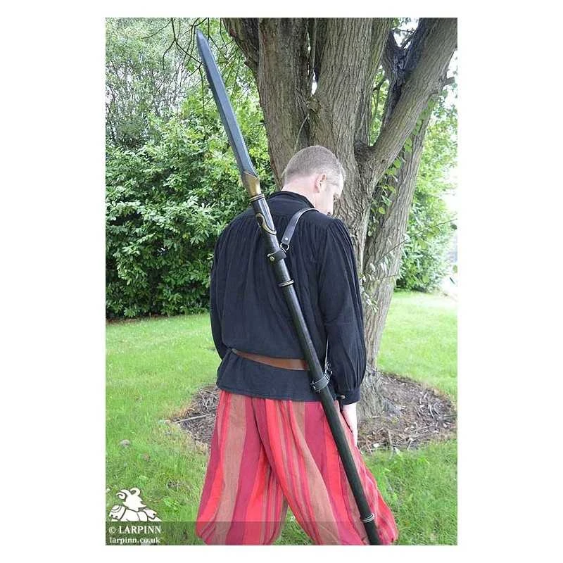 This Spear Strap is a fantastic tool for easily carrying unweildly object. Although designed specifically for spears, this poppered straps are compatible with shields and many other large weapons so you can wear them across the shoulder, leaving your hands free.
