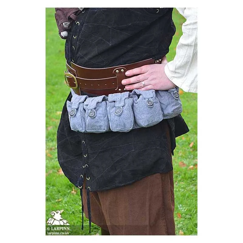 The Utility Belt – Five Bag is a fantastic way to carry all your bits and bobs. These cloth pouches offer tonnes of storage and help to organise your belongings to increase ease of access. Furthermore, each pouch is large enough to hold a 330ml soft drinks can. The Utility Belt – Five Bag is a very economic option if you need to maximise your pouches for your LARP, cosplay, and theatre costumes.