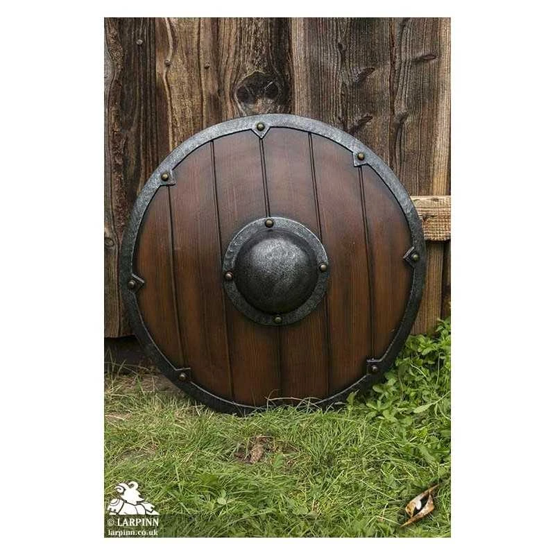 The bestselling Epic Armoury Viking Shield is a round 69 cm latex shield inspired by early pre-10th century vikings and Saxons. With a wooden texture and wood and iron paint finish, this shield is sure to impress your fellow warriors on the battlefield paired with a Viking Axe. Its slight convex shape and iron boss on the front is sure to give you an edge in combat.