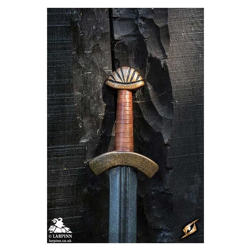 The Viking Sword is a weapon of status wielded by free men and proud warriors of skill and valour. The 95 cm long sword has a 77 cm fullered blade designed to be lightweight while maintaining its structural stability. The 12 cm leather-wrapped handle gives the sword good balance and grip, protected by a curved crossguard.