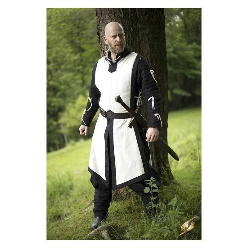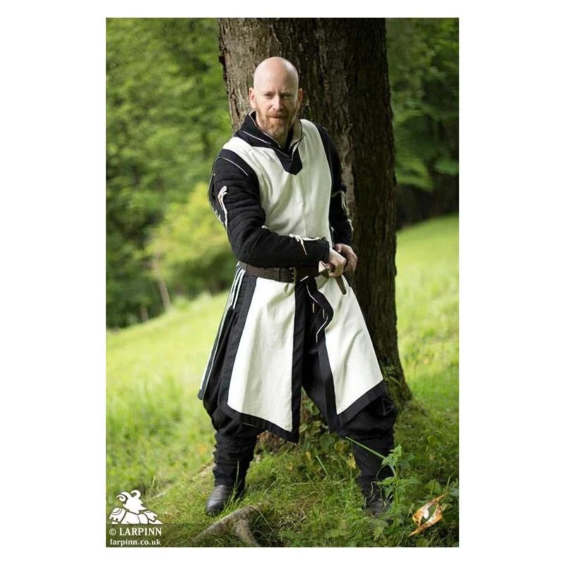 Eipc Armoury’s War Tabard is a sleeveless, open-sided garment worn over any outfit or set of armour. This particular tabard is made of medium cotton and is parti-coloured black and off-white, inspired by Gothic style of the Middle Ages. Secure the tabard closed at the sides with cotton strings, and add one of Epic Armoury’s wide selection of leather belts to finish the look. Whether you are a one-man army wanting to stand out, or you are in a unit of soldiers and want to blend in, you will appear full of style, class, and distinction by wearing the Basic Tabard.