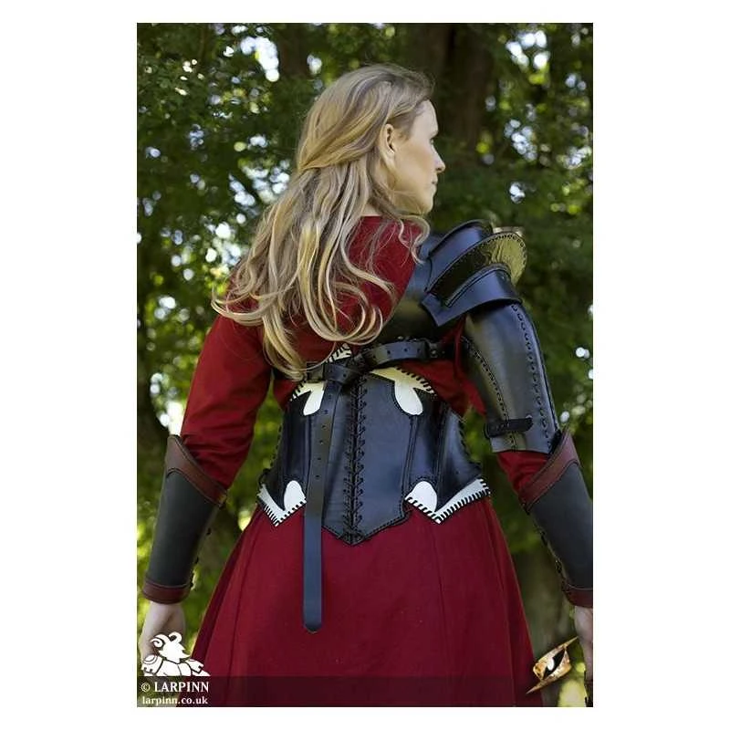 Epic Armoury’s Warrior Bracers are a set of tough leather arm guards designed to protect the forearms in combat or when shooting a bow. Made from black full-grain leather and embellished with leather at the wrist and elbows, these bracers are both durable and stylish. With the added comfort of soft, black split-leather lining and adjustable leather lacing to ensure a perfect fit, you can also be certain that these bracers can be worn for an entire event. Stitched to prevent the leather from deforming and minimizing tearing, this armour will last a long time with proper leather care.