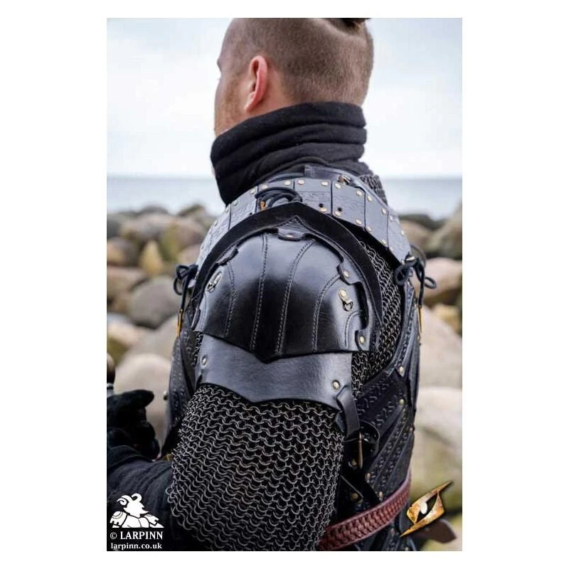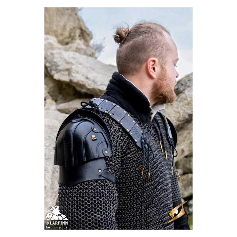 The scurrying through thick brush, it is necessary to wear the proper armor. Epic Armoury’s Black Leather Woodsman Shoulder Set is a sleek form-fitting pauldron that will not restrict movement or get caught on loose branches. Sold as a pair, this richly detailed shoulder armour is made from several plates of stiff, vegetable-tanned leather stitched together to form a solid shell that will help defend the ranger in battle. Each pauldron can be tied to your armour using the leather strap containing riveted, segmented leather plates embossed with a beautiful Celtic pattern. The distance of the shoulder can be comfortably adjusted to fit the shoulders of just about any warrior. This spaulder-style armour is perfect for rogues and assassins who require protection but do not desire bulky or loose-fitting armour.