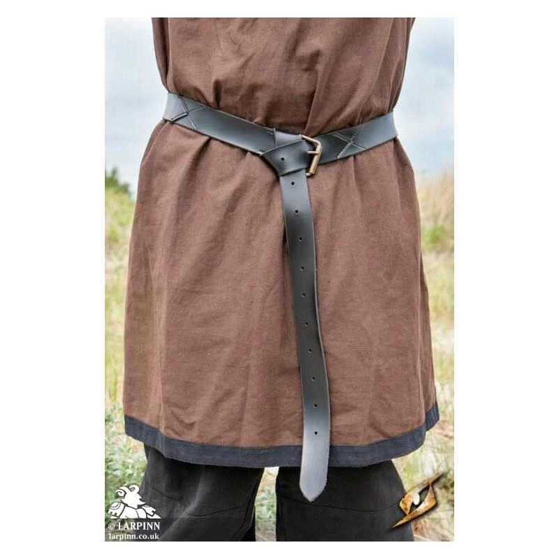 The X Belt – Faux Leather is a long belt made from animal-friendly materials. This belt is stylish with its stitched X-shaped accents, designed to fit into the medieval-fantasy aesthetic blend. With a 70 cm belt-tongue and 16 holes, adjust this belt to a large range of sizes to fit your unique body. Secure the belt using its rounded, steel belt buckle.
